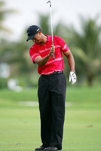 Woods has played 29 holes in the past two days of the bad-weather-interrupted CA Championship at Doral and is a meager 1 under par in that span, leaving him tied for eighth and five strokes behind tournament leader Geoff Ogilvy with seven holes remaining.